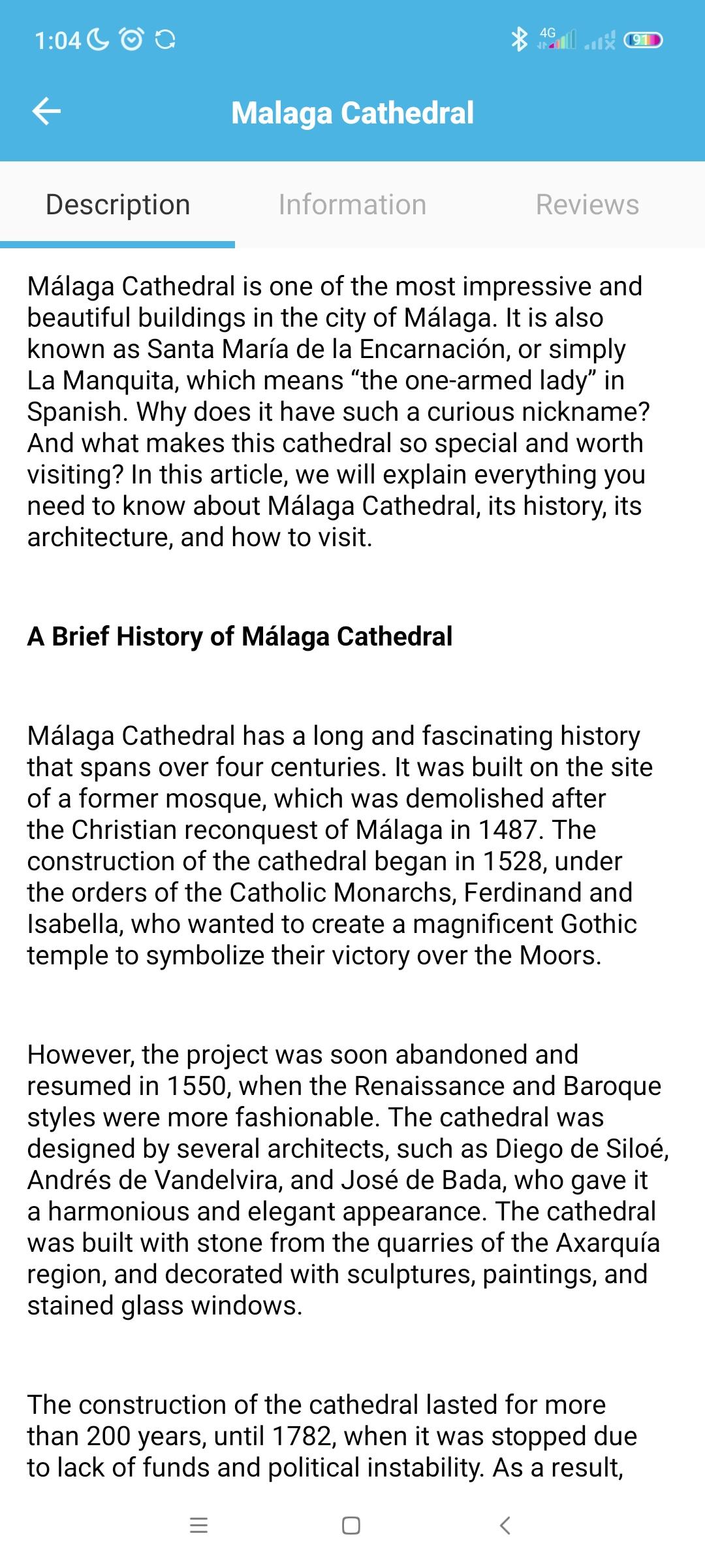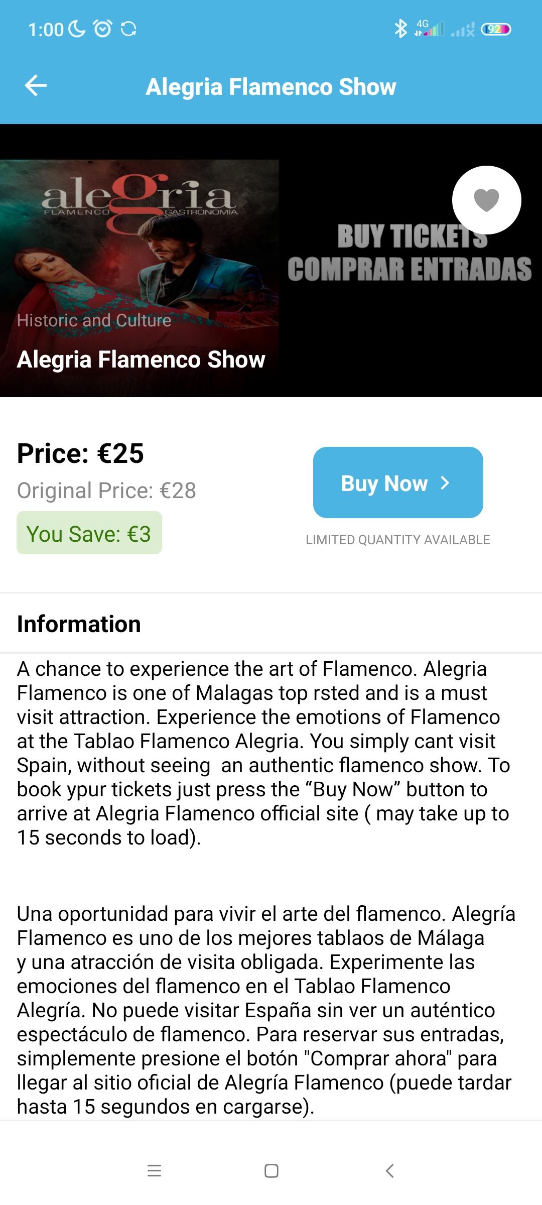 - keep udated on whats on. The Malaga app keeps you updated on fiestas, ferias, concersta, festivals and exhibitions. Don’t miss out on major events!